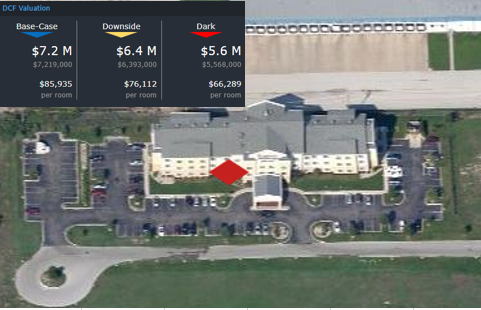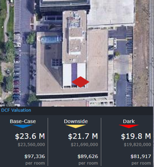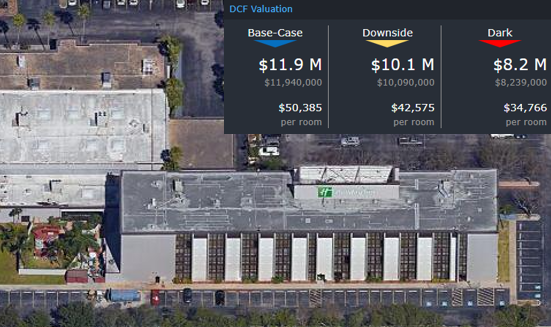 The CRED iQ valuations factor in a base-case (Most Likely), a downside (significant loss of tenants), and dark scenarios (100% vacant). For full access to the valuation reports including the Downside and Dark scenarios as well as full CMBS loan reporting, with detailed financials, updated tenant information, and borrower contact information, sign up for a free trial here.