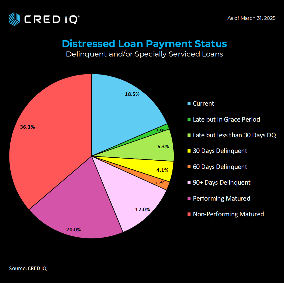 - $31.3 billion (56.2%) have passed their maturity date, with 20.0% performing and 36.3% non-performing.