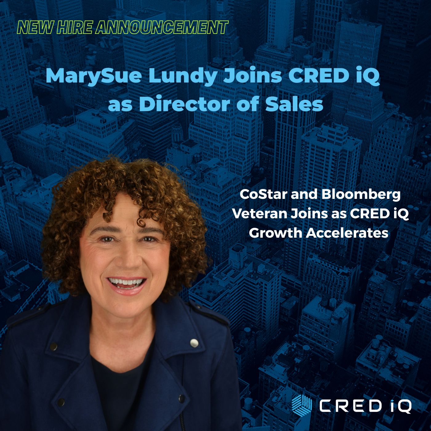 “MarySue’s relationships and deep knowledge are tremendous assets that will drive value for years to come,” said Michael Haas, Founder and CEO of CRED iQ. “We are so excited to welcome MarySue to CRED iQ as we continue to build our New York team”