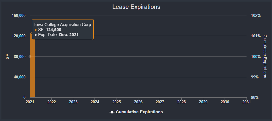 Kaplan University is vacating this 124,500-sf office building in Orlando, FL, which secures a $16.5 million mortgage loan. Kaplan, formerly a for-profit college, was the property’s sole tenant. The loan was added to the servicer’s watchlist in August 2021 and updated commentary indicates a 78,500-sf portion of the property may already be backfilled pending negotiations. The remaining vacant space is being marketed as available and CBRE has the listing. Assuming the 78,500-sf leasing deal comes to fruition, then occupancy at the property would be approximately 63%. The loan is scheduled to mature in December 2024 and has been current throughout its term. For the full valuation report and loan-level details, click here.