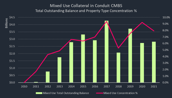 Pockets of distress have materialized across various markets in the office sector over the past month. Birmingham, AL, New Orleans, and Baltimore exhibited the highest increases in office distress, accounting for 3 of the Top 10 increases in distress by market-sector in February 2022. The Birmingham market was impacted by two office properties — Wells Fargo Tower and Inverness Center — transferring to special servicing. The two properties, along with an office building in Columbia, SC, secure a $129.2 million mortgage that is at risk of imminent monetary default, according to the latest servicer commentary.